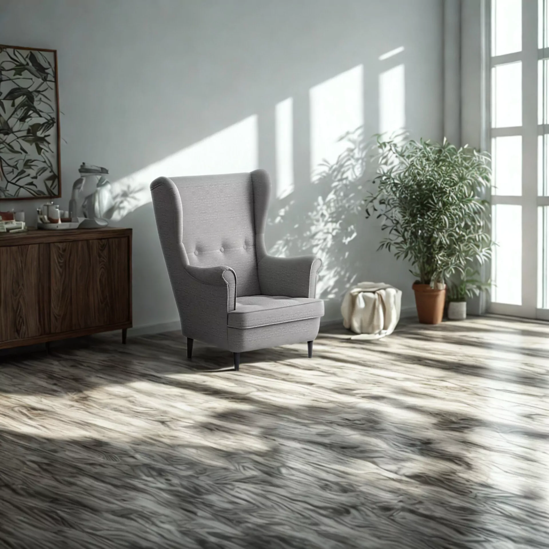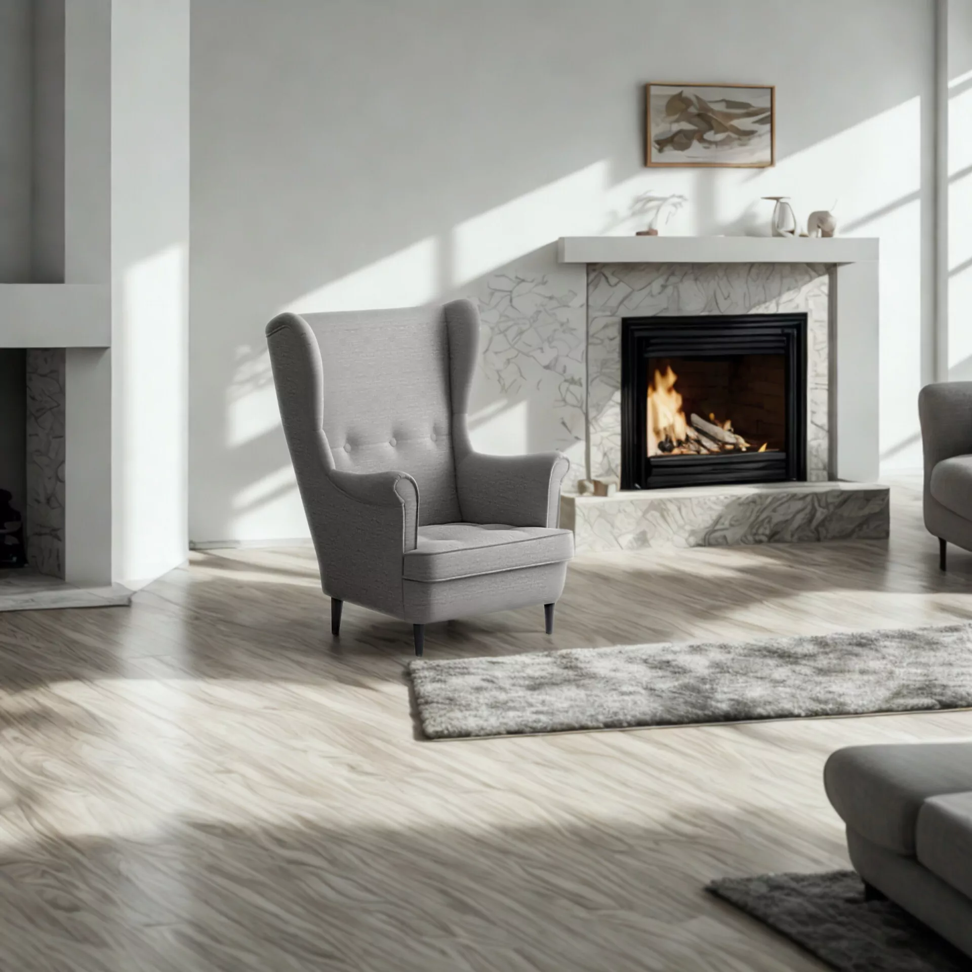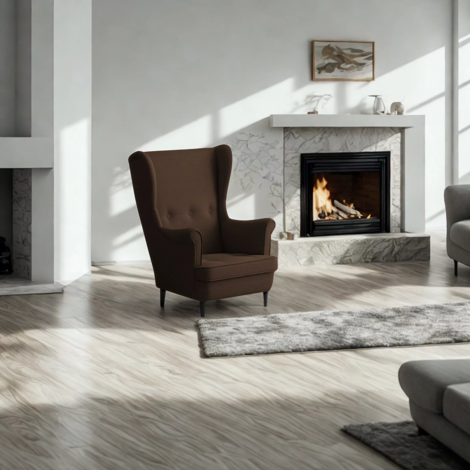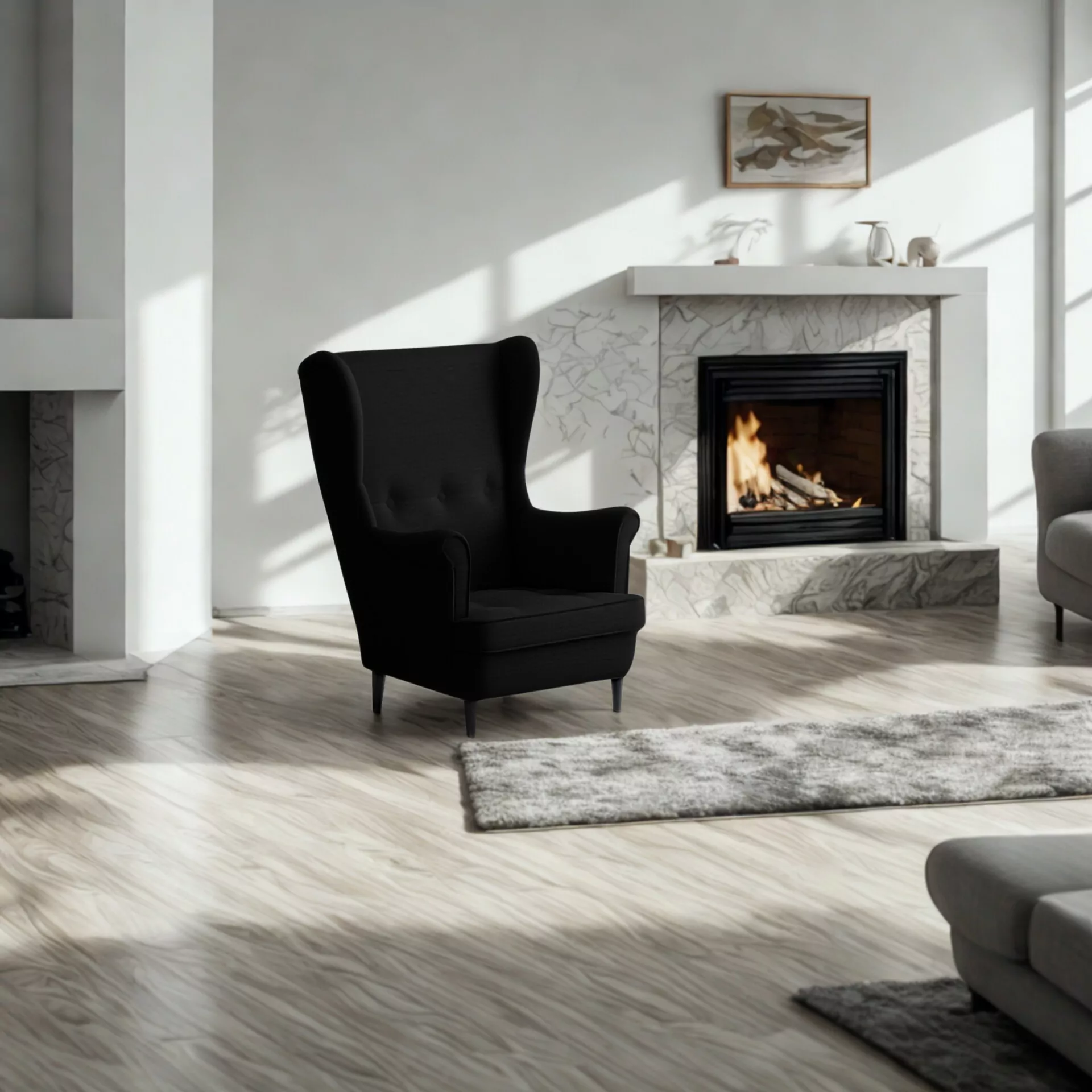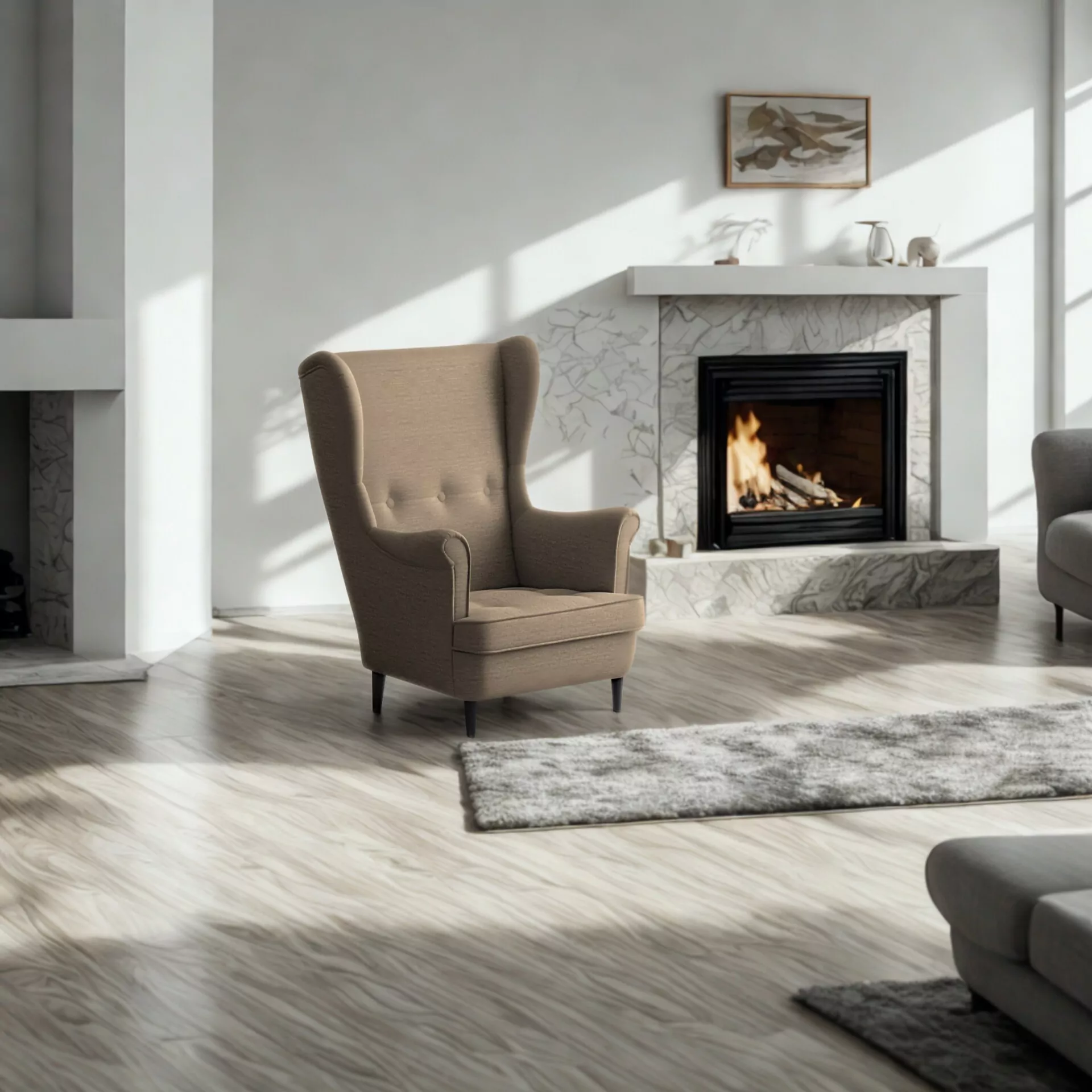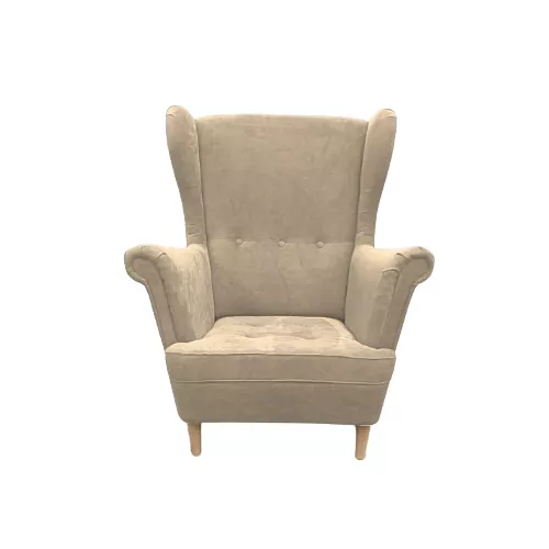 Wysokie, profilowane oparcie z charakterystycznymi bocznymi skrzydłami („uszami”) doskonale podtrzymuje plecy i kark, a głębokie, szerokie siedzisko gwarantuje wygodę na najwyższym poziomie. To idealne miejsce na chwilę relaksu z książką, kawą lub podczas oglądania ulubionego filmu.