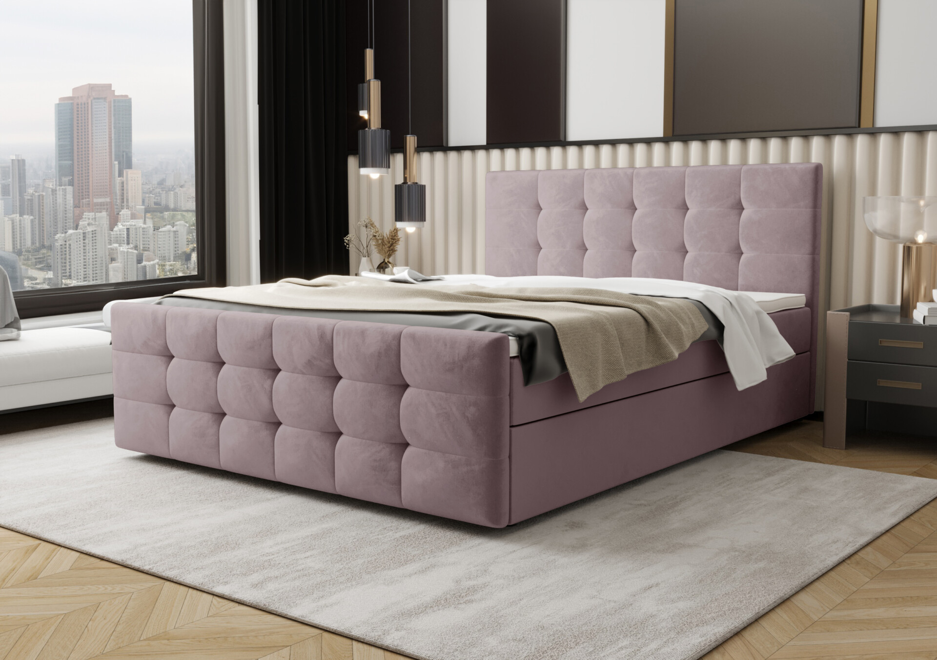 Łóżko kontynentalne Cora II wyróżnia się efektownym pikowanym oparciem i przodem łóżka. To doskonały wybór dla osób ceniących sobie wygodę i nowoczesny design. Projekt opiera się na założeniu, by stworzyć łóżko funkcjonalne, wygodne, a także o wysokich walorach estetycznych.