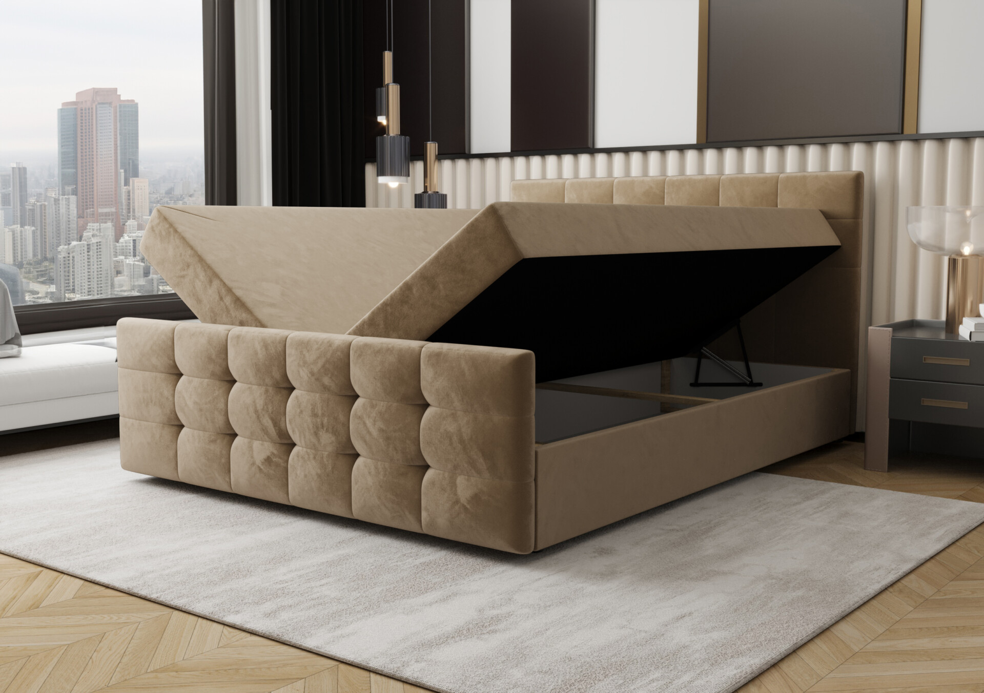 Łóżko kontynentalne Cora II wyróżnia się efektownym pikowanym oparciem i przodem łóżka. To doskonały wybór dla osób ceniących sobie wygodę i nowoczesny design. Projekt opiera się na założeniu, by stworzyć łóżko funkcjonalne, wygodne, a także o wysokich walorach estetycznych.