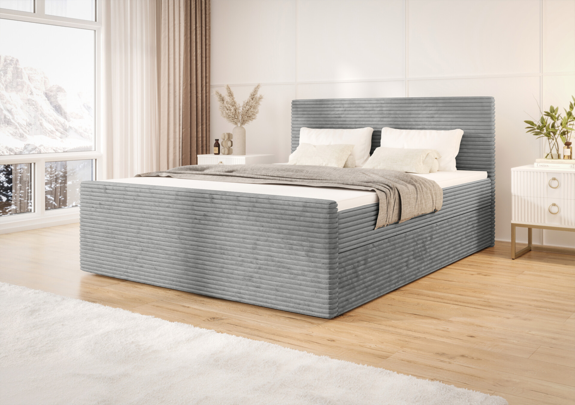 Soft to połączenie nowoczesnego stylu i funkcjonalności w wyjątkowo przytulnym wydaniu. Sztruksowa tkanina obiciowa nadaje łóżku ciepły, modny charakter, a jej wyrazista faktura podkreśla unikalny design. Stonowana kolorystyka sprawia, że łóżko doskonale wpisze się w zarówno nowoczesne, jak i klasyczne wnętrza.