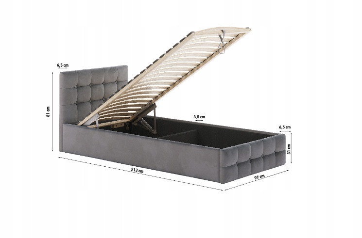 Lima to stylowe łóżko tapicerowane z miękkim, pikowanym zagłowiem oraz pojemnikiem na pościel otwieranym od góry.