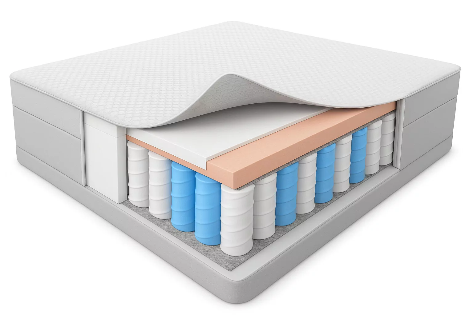 • Sprężyny kieszeniowe (Pocket) – gwarantują dynamiczne wsparcie i izolację ruchu, dzięki czemu poruszanie się jednej osoby nie zakłóca snu drugiej.