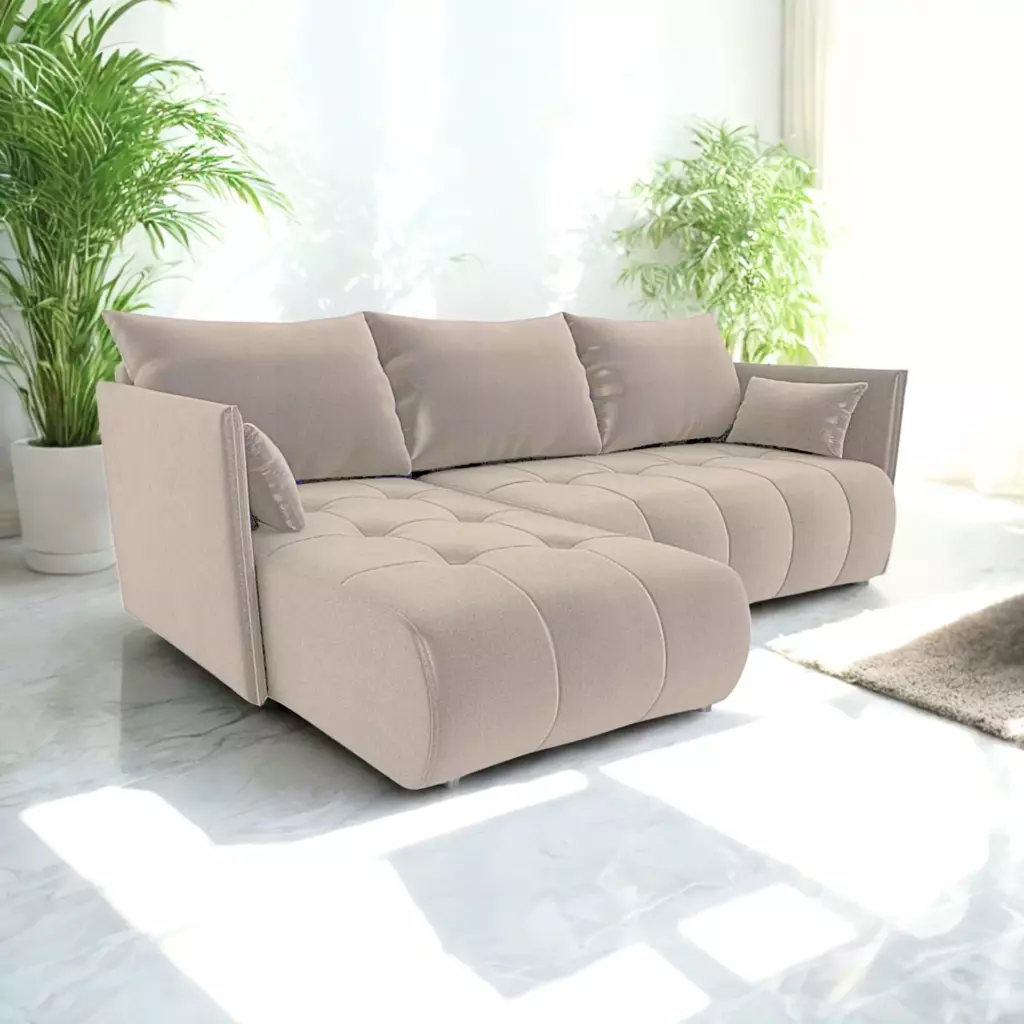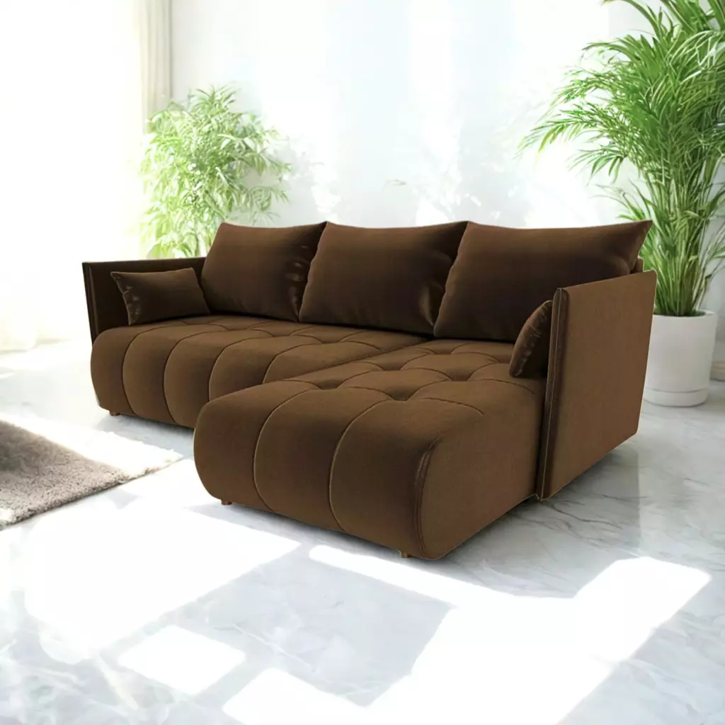 Galaxy L to mebel stworzony z myślą o praktycznym zastosowaniu. Wyposażony został w funkcję spania, która pozwala w szybki sposób przekształcić go w wygodne łóżko – idealne dla gości lub do codziennego użytku. Dodatkowym atutem jest pojemnik na pościel, który ułatwia przechowywanie i pomaga utrzymać porządek w salonie.