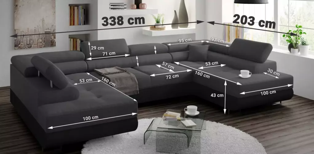 Podane wymiary mogą różnić się od rzeczywistych o około ±2–3 cm ze względu na specyfikę produkcji mebli tapicerowanych.